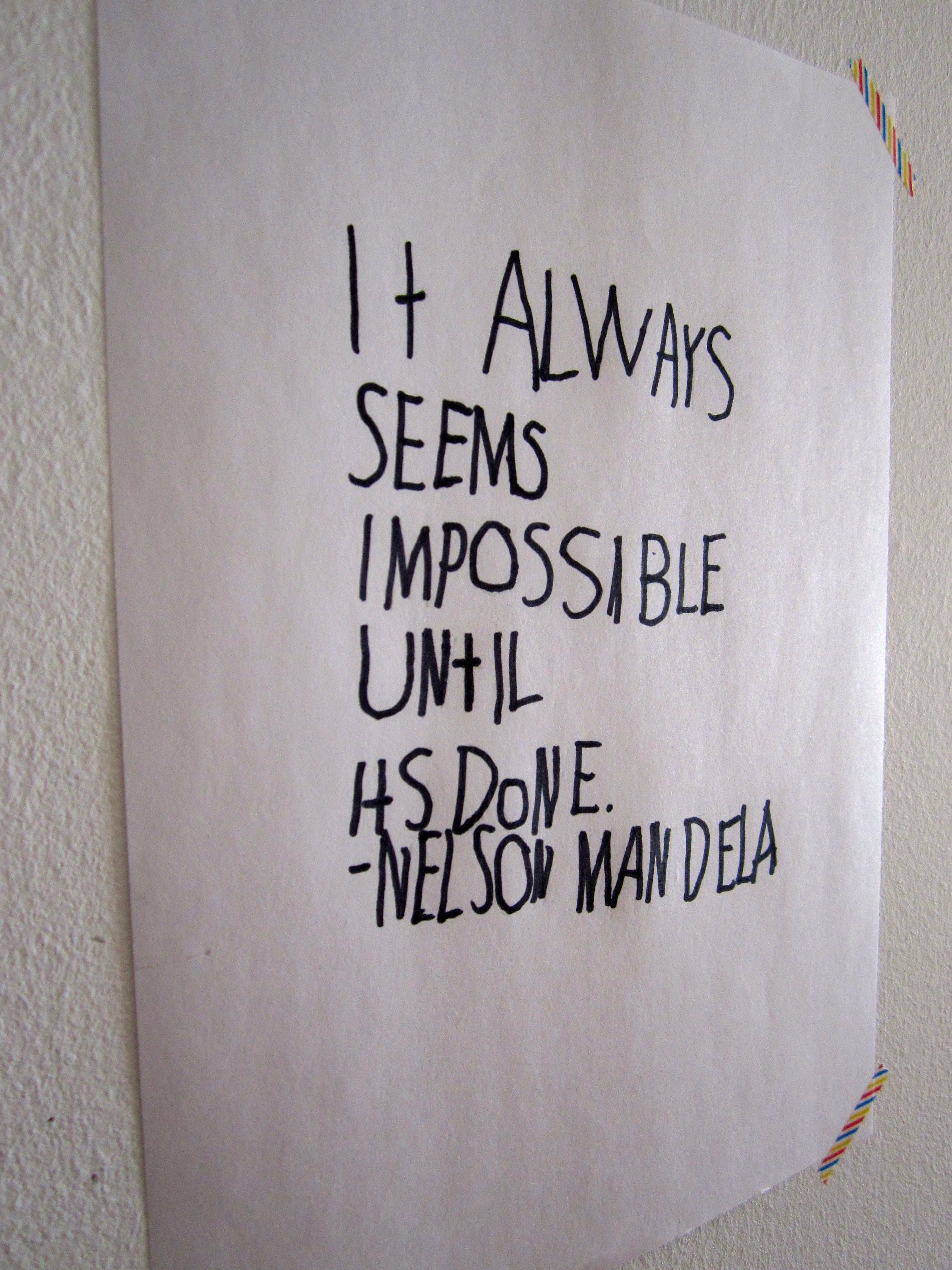 Nelson Mandelas Zitat ist eines meiner liebsten und unsere Tochter hat es für uns aufgeschrieben. Ich habe es vor einer Weile auf einem anderen Blog gelesen. Ich glaube es war auf oh, hello friend. Ein Besuch darauf lohnt sich.
