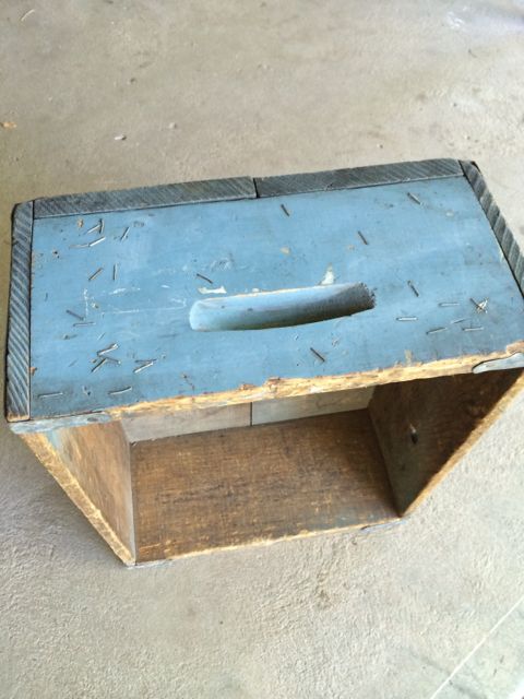 Vor 10 oder mehr Jahren konnte man hier alte Coca Cola Boxen oder andere Holzschachteln für ganz wenig Geld kaufen. Im Moment muss man mit einem Preis von 40 – 60 Dollar rechnen. Ich habe nach einer Holzschachtel gesucht, damit Calum seine Playmobilsachen darin verstauen kann. Letzte Woche habe ich folgende zu einem guten Preis gefunden: