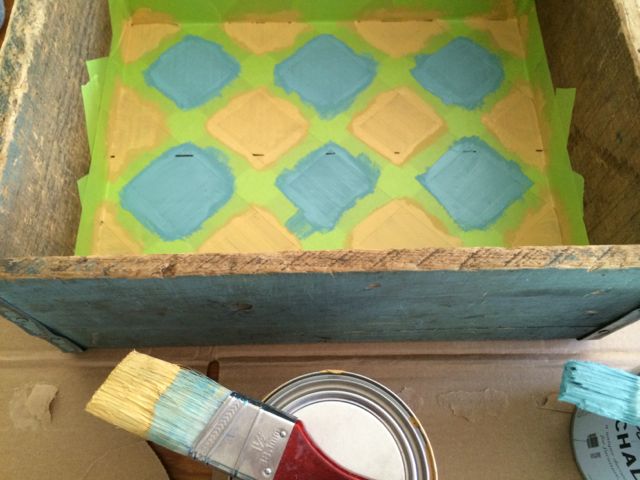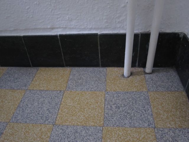 und dann haben wir ein bisschen Farbe dazugegeben (inspiriert von unseren früheren Bodenplatten in der Toilette):