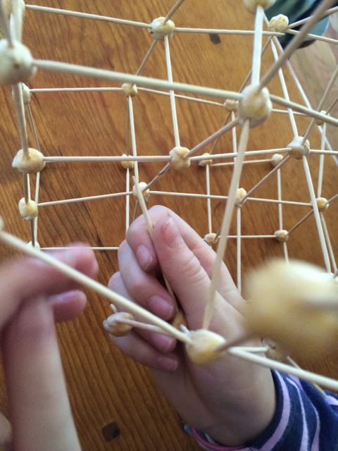 Wir haben getrocknete Kichererbsen (die in der Dose sind nicht ideal) über Nacht in Wasser eingelegt. Danach lassen sich coole Konstruktionen daraus bauen. Das hat nicht nur unseren Kindern Spass gemacht.